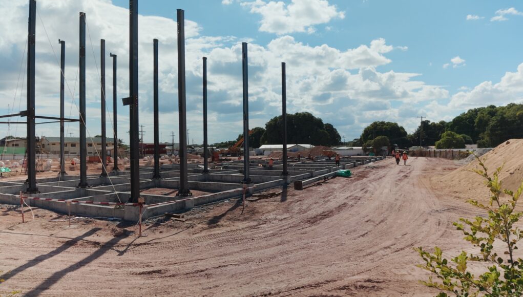 At the site of the proposed Lethem Regional Hospital, officials observed that while sections of the foundation have been laid and steel columns erected in parts of the cleared area, the project has not advanced beyond its initial phase. There was no visible superstructure or enclosure work underway, despite the sod-turning having taken place in October 2024.