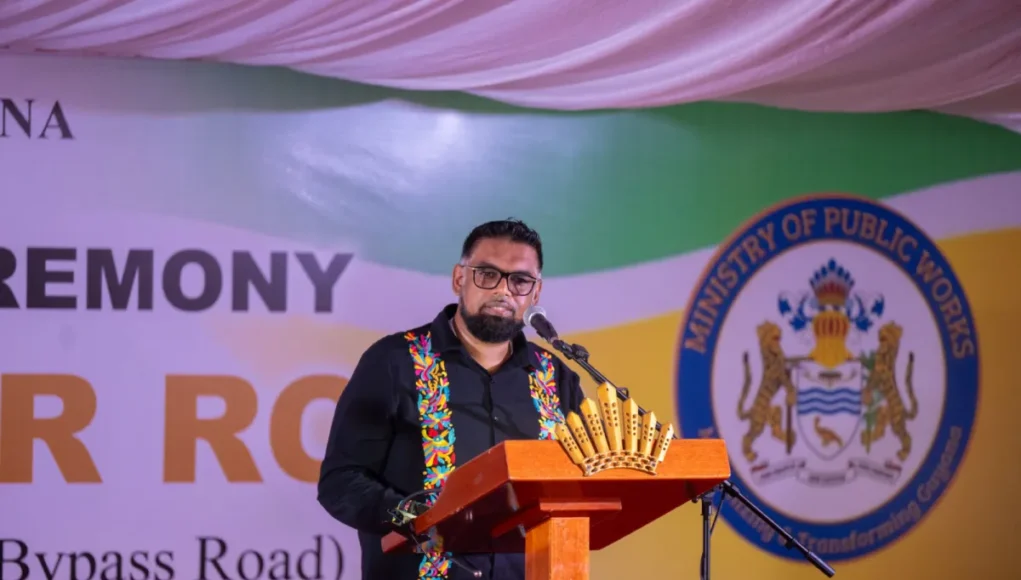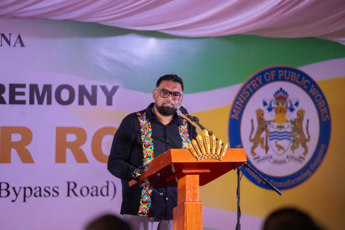 President Dr Mohamed Irfaan Ali at the commissioning of the Aubrey Barker Road